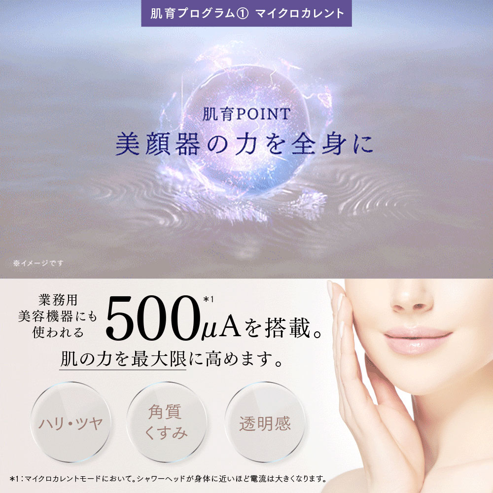 電気を発するにも関わらず《充電・電気代》無しで自宅の水が、浴びるだけで美顔器と同じ効果を得られる「肌育」シャワーに。