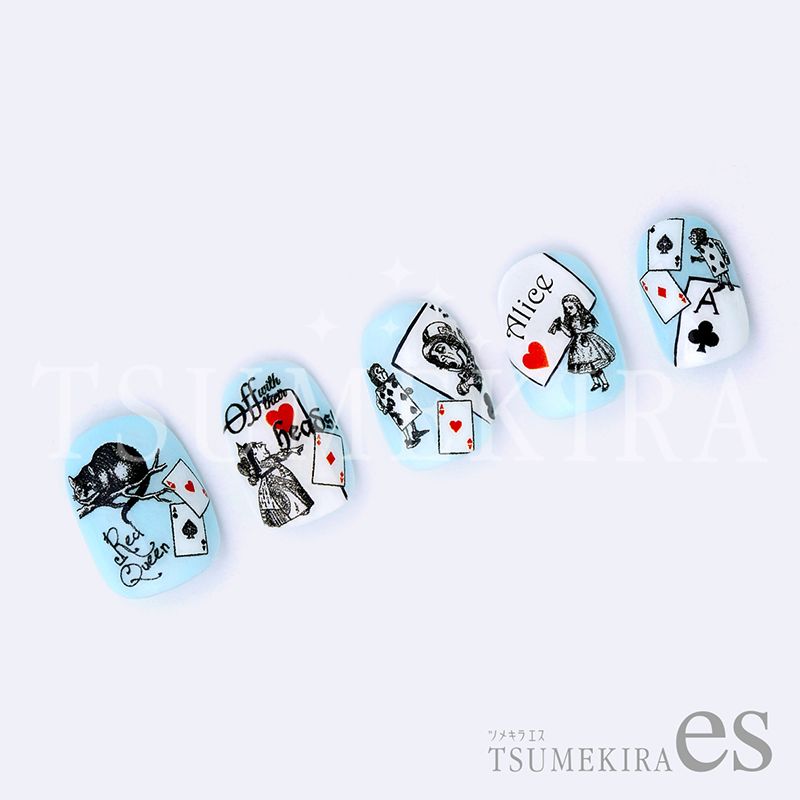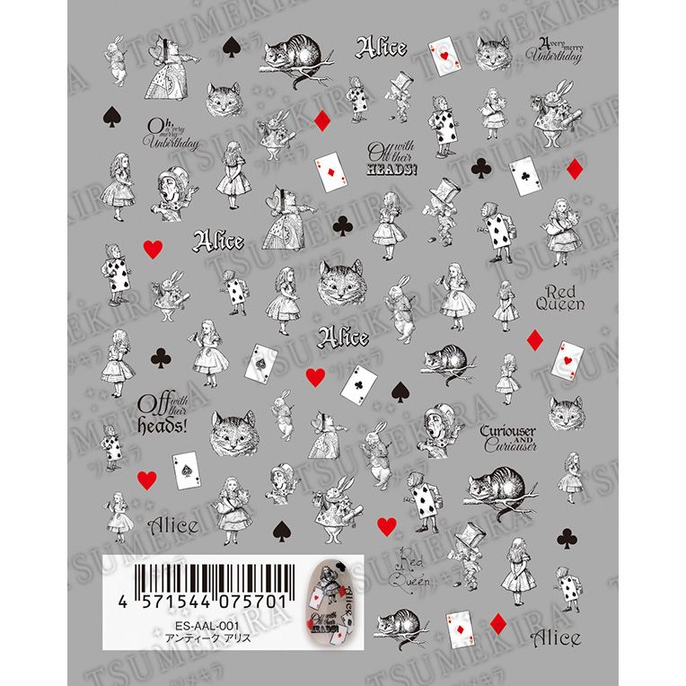 アリスや白うさぎ、チェシャ猫、帽子屋など馴染みのキャラクターたちとトランプモチーフとロゴは組み合わせて貼るのにぴったり。