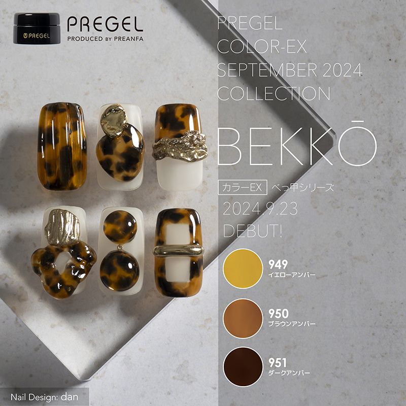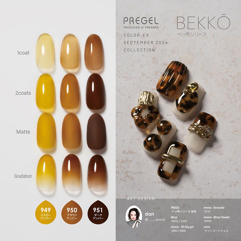 べっ甲ネイルにおすすめなカラーラインナップです。色の組み合わせと濃淡を調整することで、様々なアレンジが可能です。