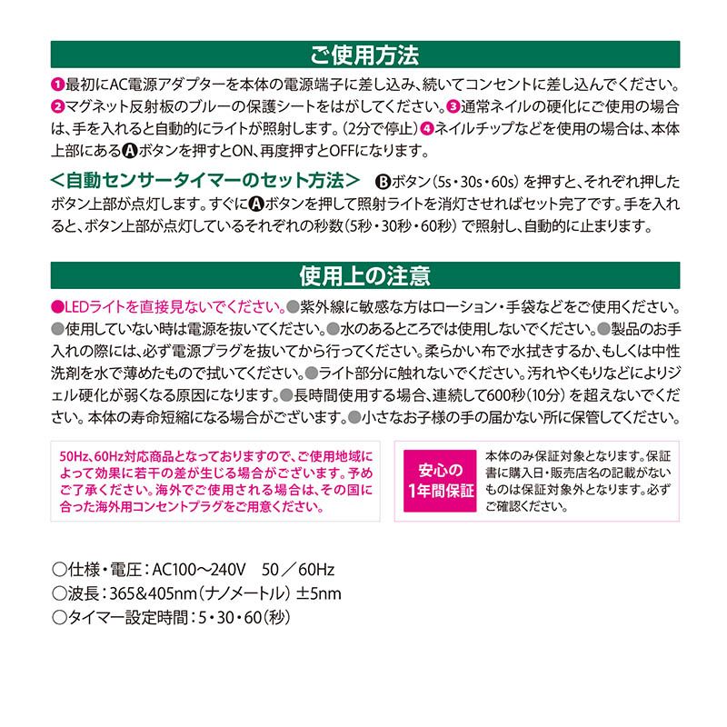 UV&LED 2種類のジェルに対応(対応波長365nm,405nm)のダブル波長LEDチップを30搭載!