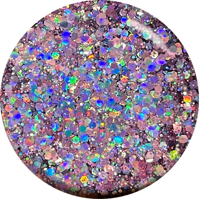 主役級のきらめきを放つグリッターシャワーシリーズ。ひときわ際立つ輝きが、日常の何気ないひとときを特別な瞬間に変えるカラーラインナップ。淡いパープルとブルーで構成されたラメが近未来のジュエリーを思わせるグリッタージェル。