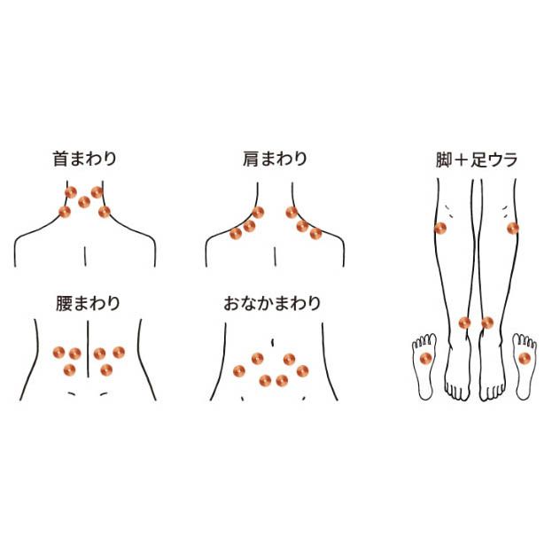 ●おすすめ貼り位置:首まわり・肩まわり・腰まわり・おなかまわり・脚+足裏体感に合わせて部位まわりに コイルを4~6個をお貼りください。