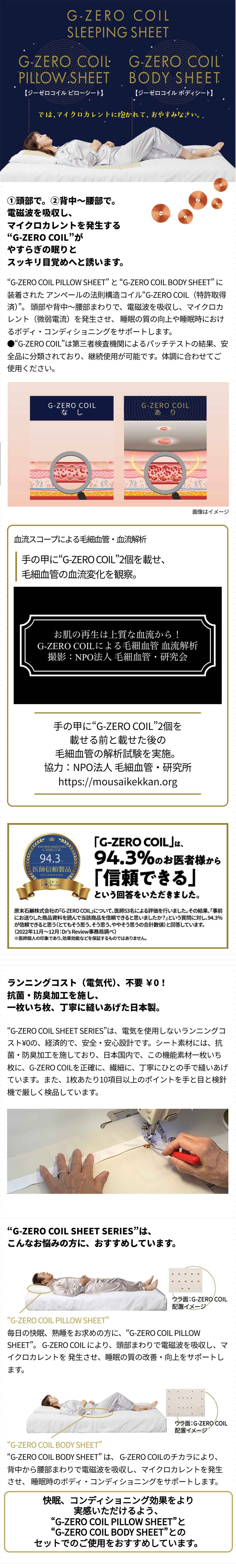 ※快眠、コンディショニング効果をより実感いただけるよう、“G-ZERO COIL PILLOW SHEET”と“G-ZERO COIL BODY SHEET”とのセットでのご使用をおすすめしています。