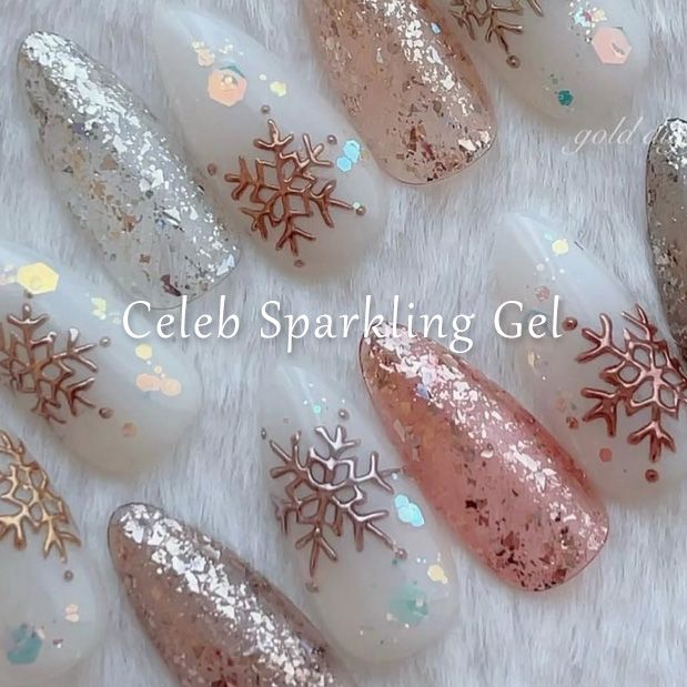 上品かつエレガントにもかかわらずナイトパーティで輝く箔グリッター系のカラージェル