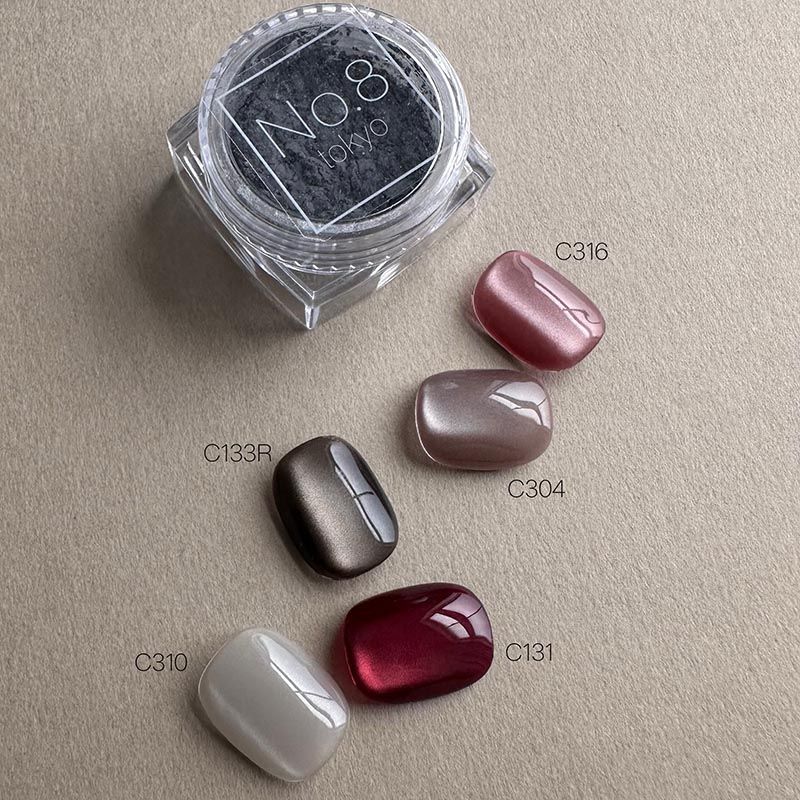 またマグネットパウダーの黒さも軽減され、カラージェルに混ぜた時にトーンが暗くなりにくくなりました。
