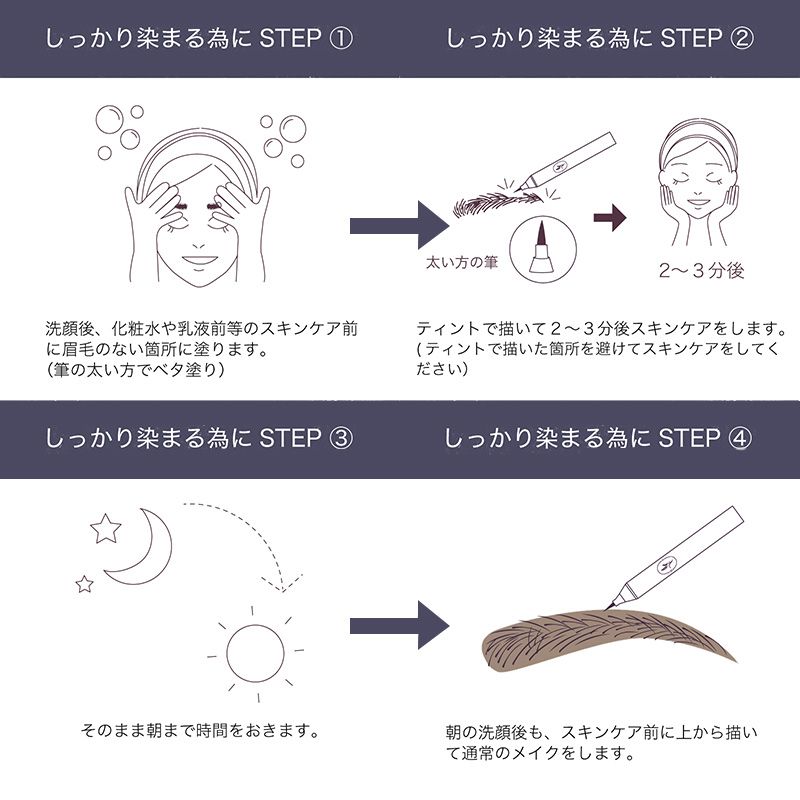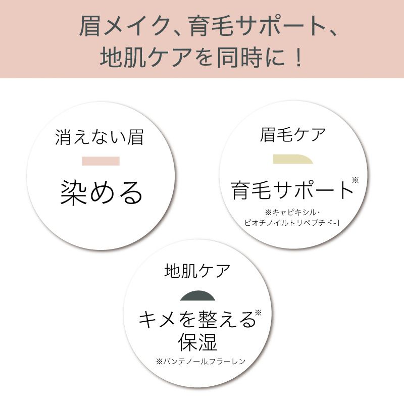 保湿・トリートメント効果で健やかな育毛をサポートしながらティント成分が皮膚に色を定着させ、眉メイクをキープ!