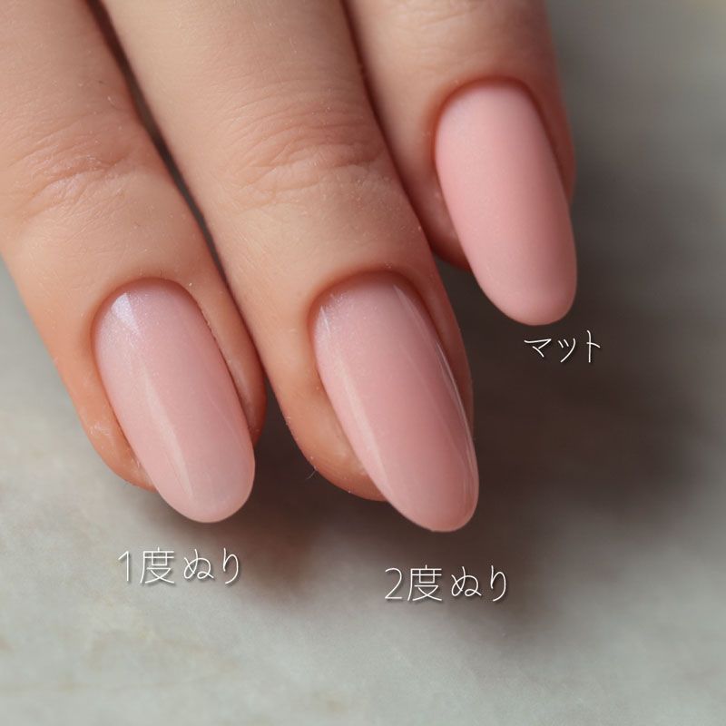 やや透明感のある色で、微粒子ラメの入った優しい印象のカラー