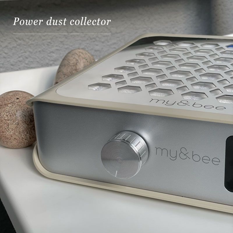 吸引力は9段階。独自の吸気設計で、プレフィルターを装着しても十分な吸引力を発揮します。ロングネイルや厚みのあるデザインなどダストの舞いやすい施術では、最大パワーにすることでダストをしっかりと吸引可能です。