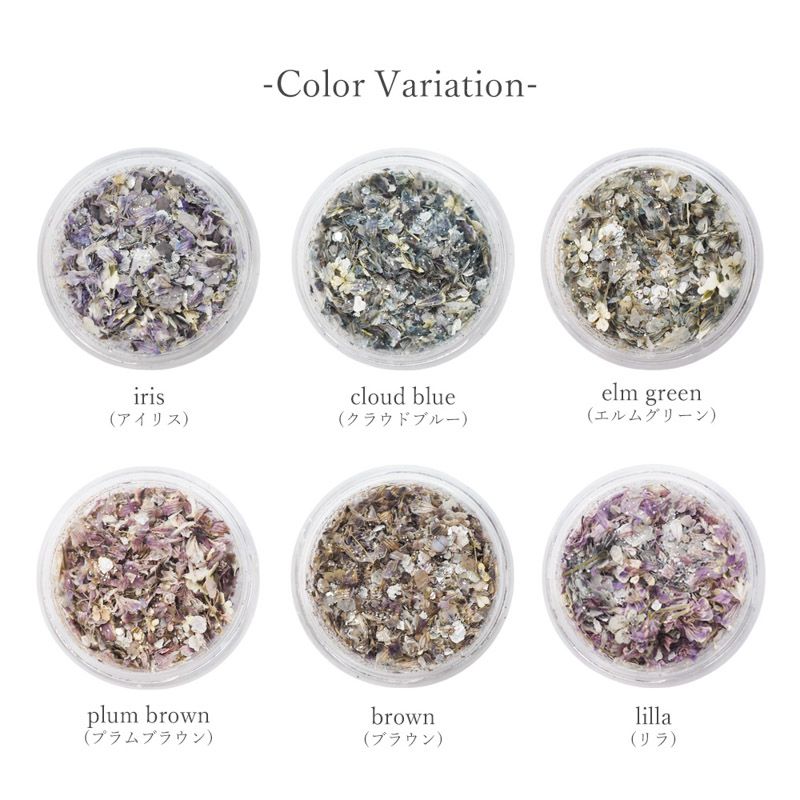 お花、フレーク共に何種類かの同系色の物を入れてあるので幅広いカラーに合うかと思います!