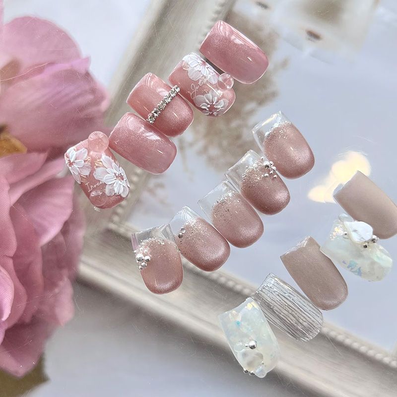 くすみの中にほんのりピンクの春らしい色合いに シルバーのマグネットパウダーがふんわりと浮き上がる 美しいカラーに仕上がりました。