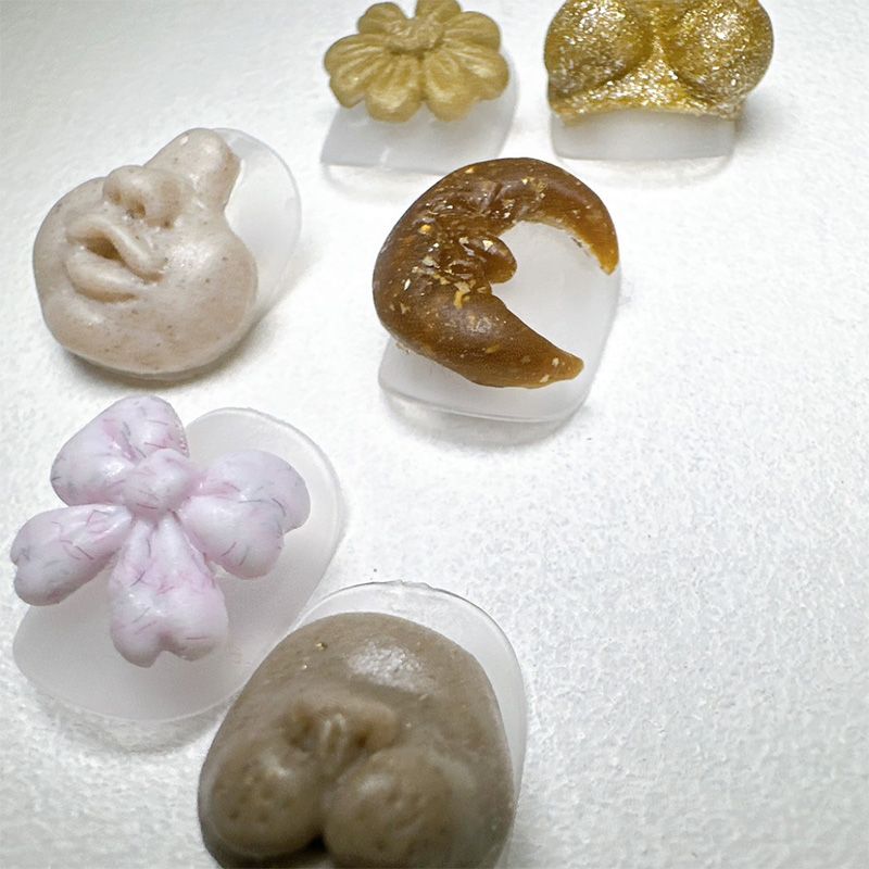 スパチュラやシリコンスティック等で、形を自由自在に作れます。