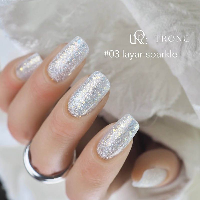 カラーの上に重ねるクリアな白マグ。箔入りでよりキラキラ感UP。少しホワイトゴールド寄りで肌なじみがよく重ね塗りで万能なアイテム。