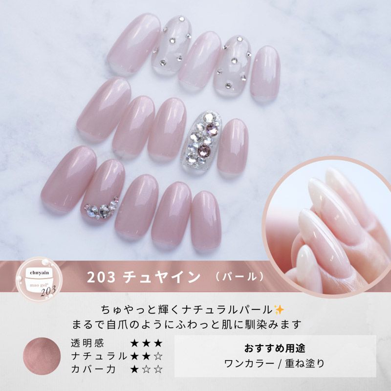パールジェルによくあるメタリック感は一切なく、繊細に光を反射する本真珠の粒子の輝きはす゛っと見ていられる美しさ。