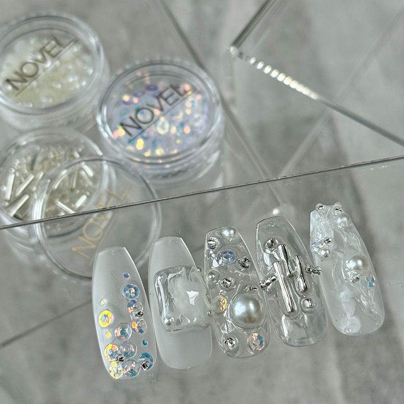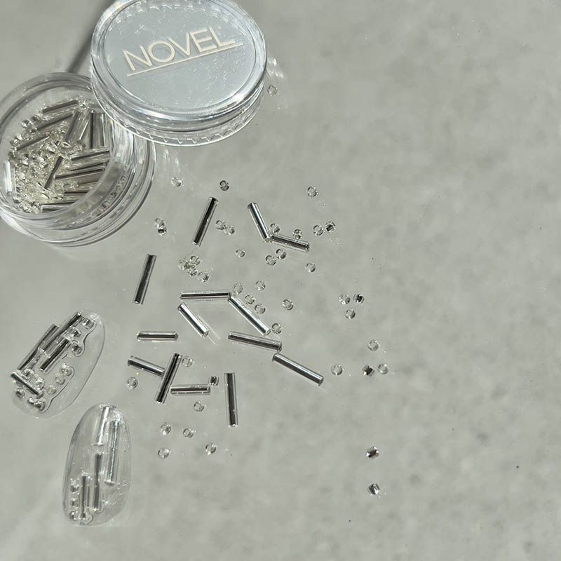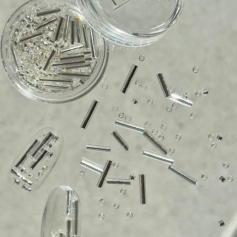 6・ 9のスティックビーズと1.5のクリアシルバービーズがmixされています。