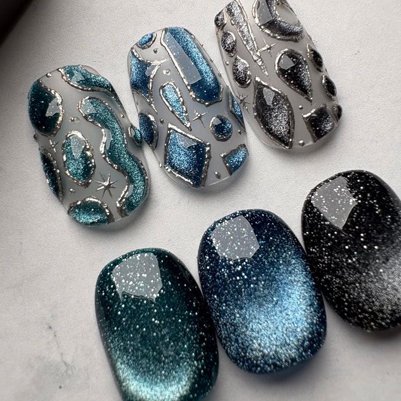 フラッシュグリッターとオーロラグリッターを加えることで深い海の中の美しさを表現しております。
