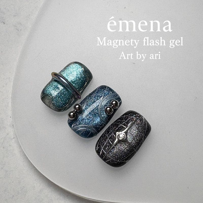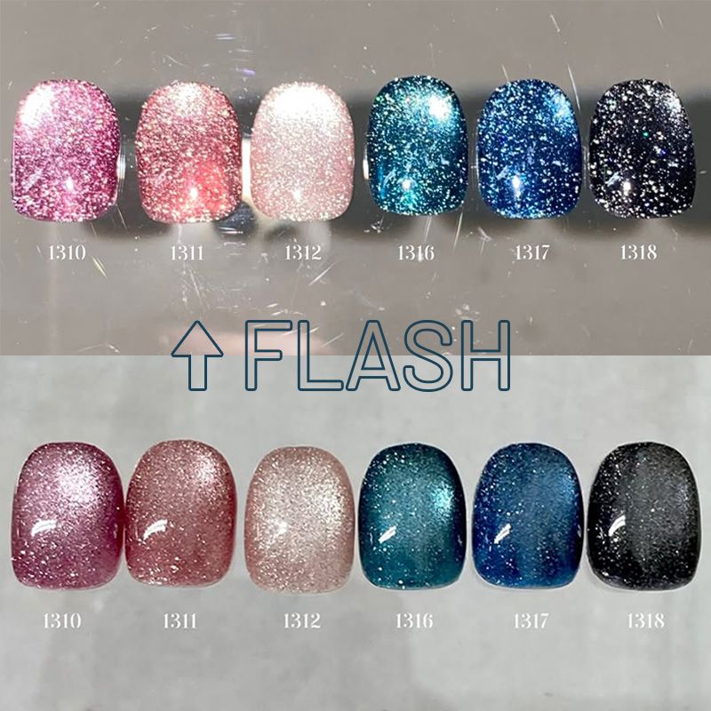 光を反射するフラッシュグリッターが合わさり美しい輝きを放つ不思議なジェル