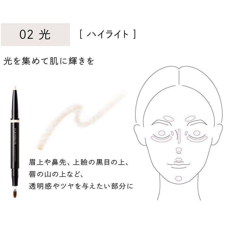 02 光 眉上や鼻先など、透明感や艶を与えたい部分に