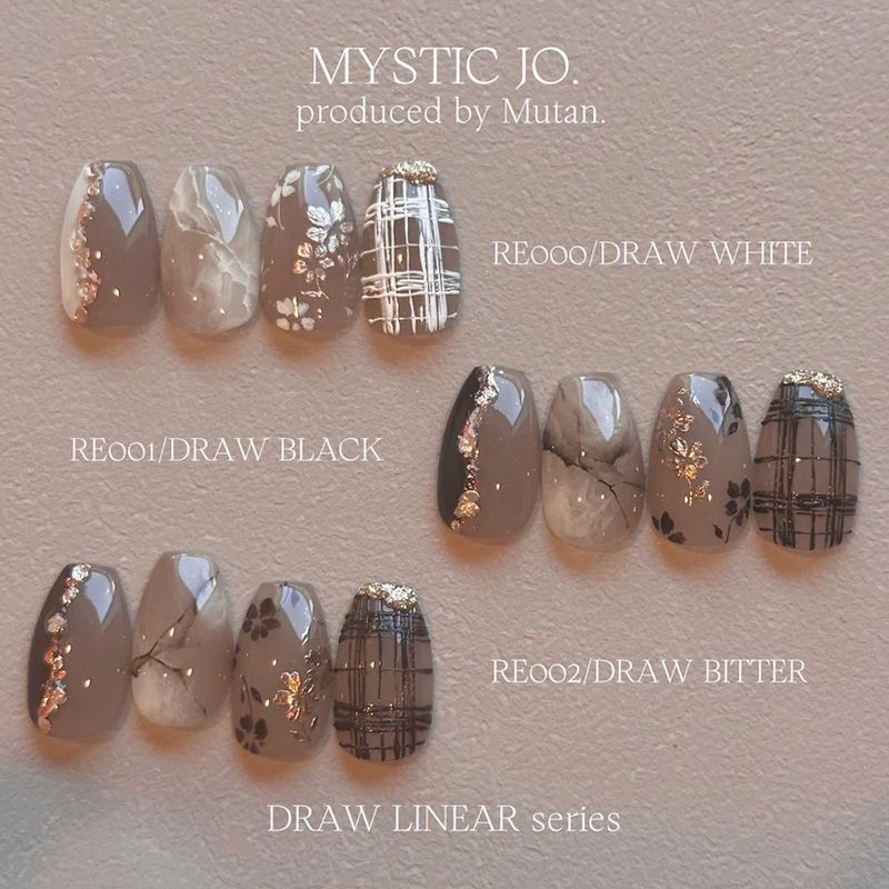 刷毛筋がつきやすく、極細な線が描けるこだわりのテクスチャーで天然石やフラワーデザインは勿論、ニュアンスネイルにも大活躍のジェルです。