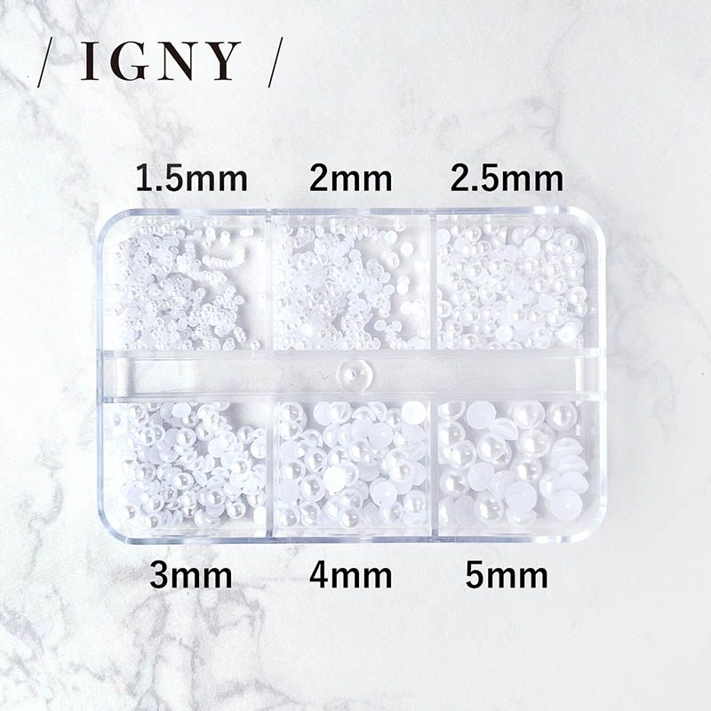 1.5mm~5mmの6サイズが入った半丸パールです。