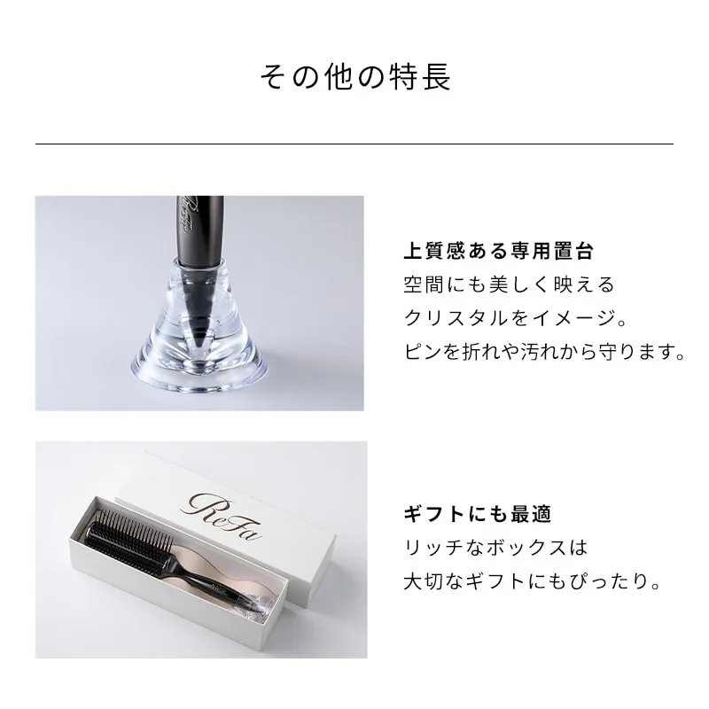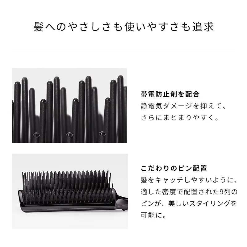 アーク形状に沿って9列のピンを絶妙に配置。土台部分は厚みをもたせずスリムにしているため、髪の内側に入れてブラッシングしやすく、理想のブローが叶います。