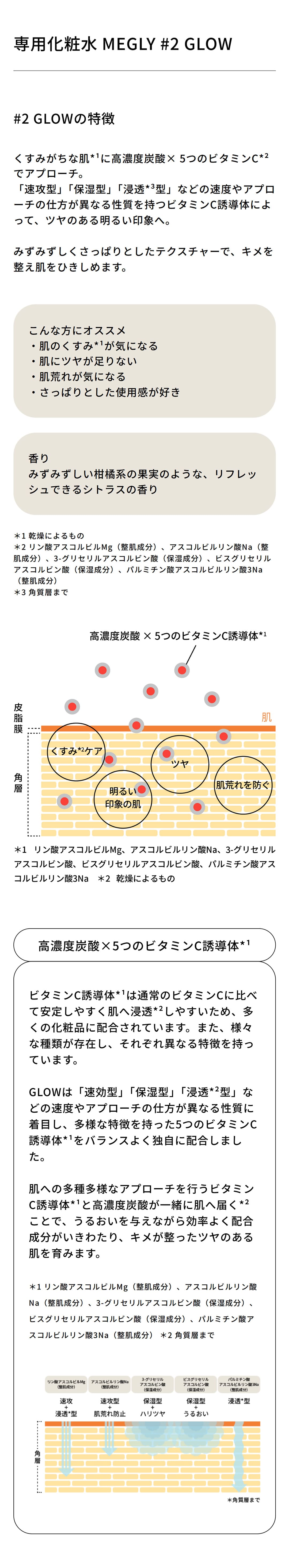 「速攻型」「保湿型」「浸透*型」などの速度やアプローチの仕方が異なる性質を持つビタミンC誘導体によって、ツヤのある明るい印象へ。