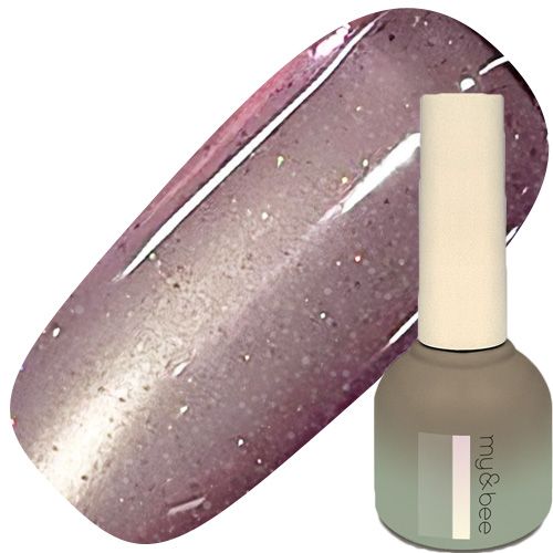 くすんだパープルベースに微粒子のベージュマグ+七色のラメとフラッシュ