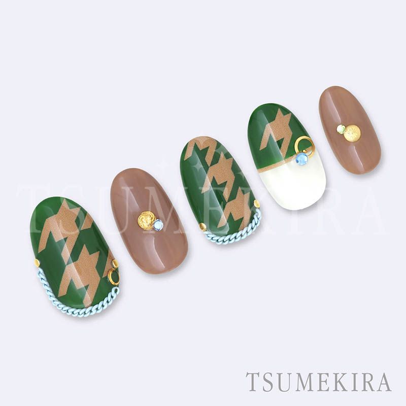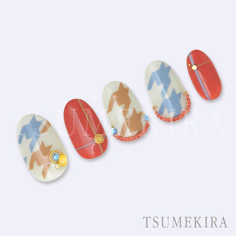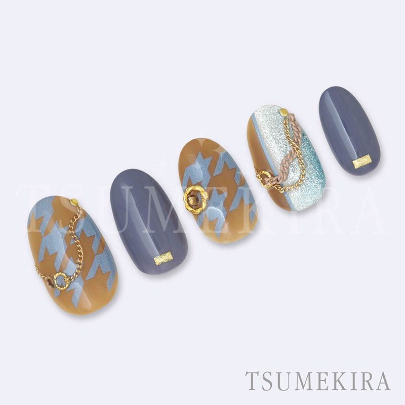 大きめ2サイズの千鳥格子柄で、指先にしっかりと存在感をプラス。
