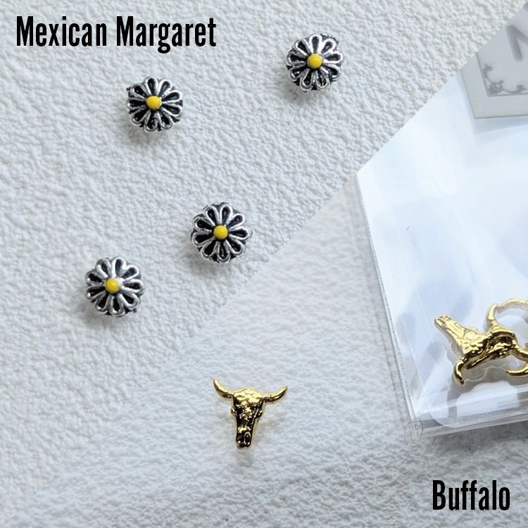 かわいいマーガレットシェイプのメキシカンジュエリーの様なパーツで、真ん中の花芯部分のカラーが4カラーあり、お好みに合わせてお選びいただけます。