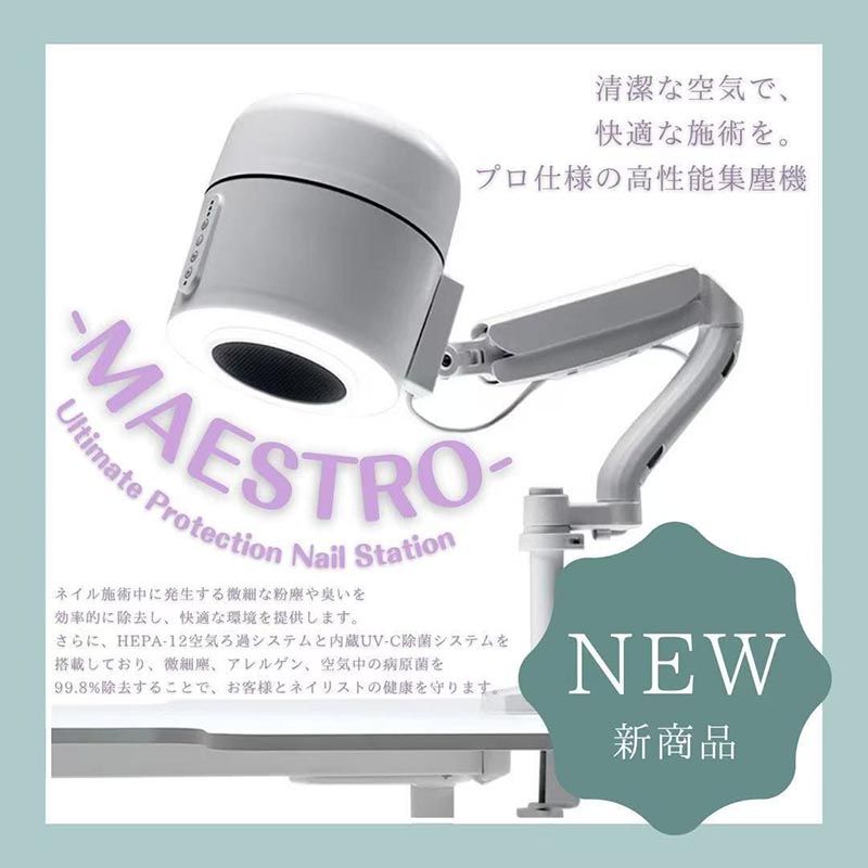 ネイル施術中に発生する微細な粉塵や臭いを効率的に除去し、快適な環境を提供します。