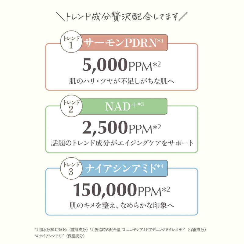 トレンドのサーモンPDRN*2とNAD+*3を配合し、肌ダメージ*4を集中ケア。