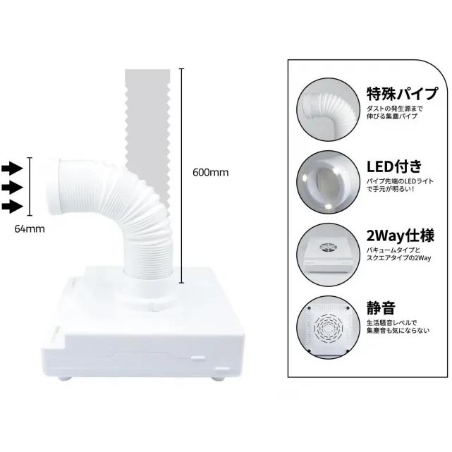 バキュームタイプとスクエアタイプの2タイプに換装可能です。