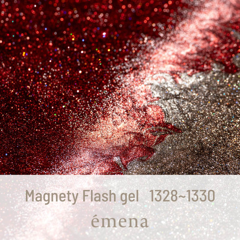 光を反射するフラッシュグリッターが合わさり美しい輝きを放つ不思議なジェル