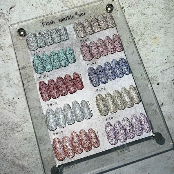 ライトを当てたり、フラッシュ撮影時に更にラメが光るジェルになります。