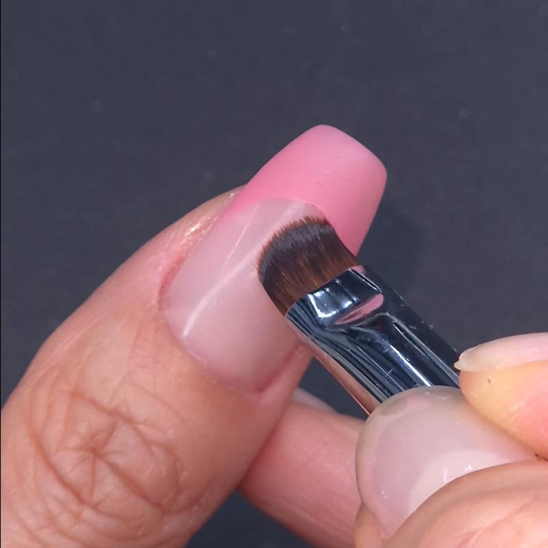 フレンチのスマイルラインの修正がしやすいブラシ。短くてコシのある毛質でスマイルラインを鮮明にします。