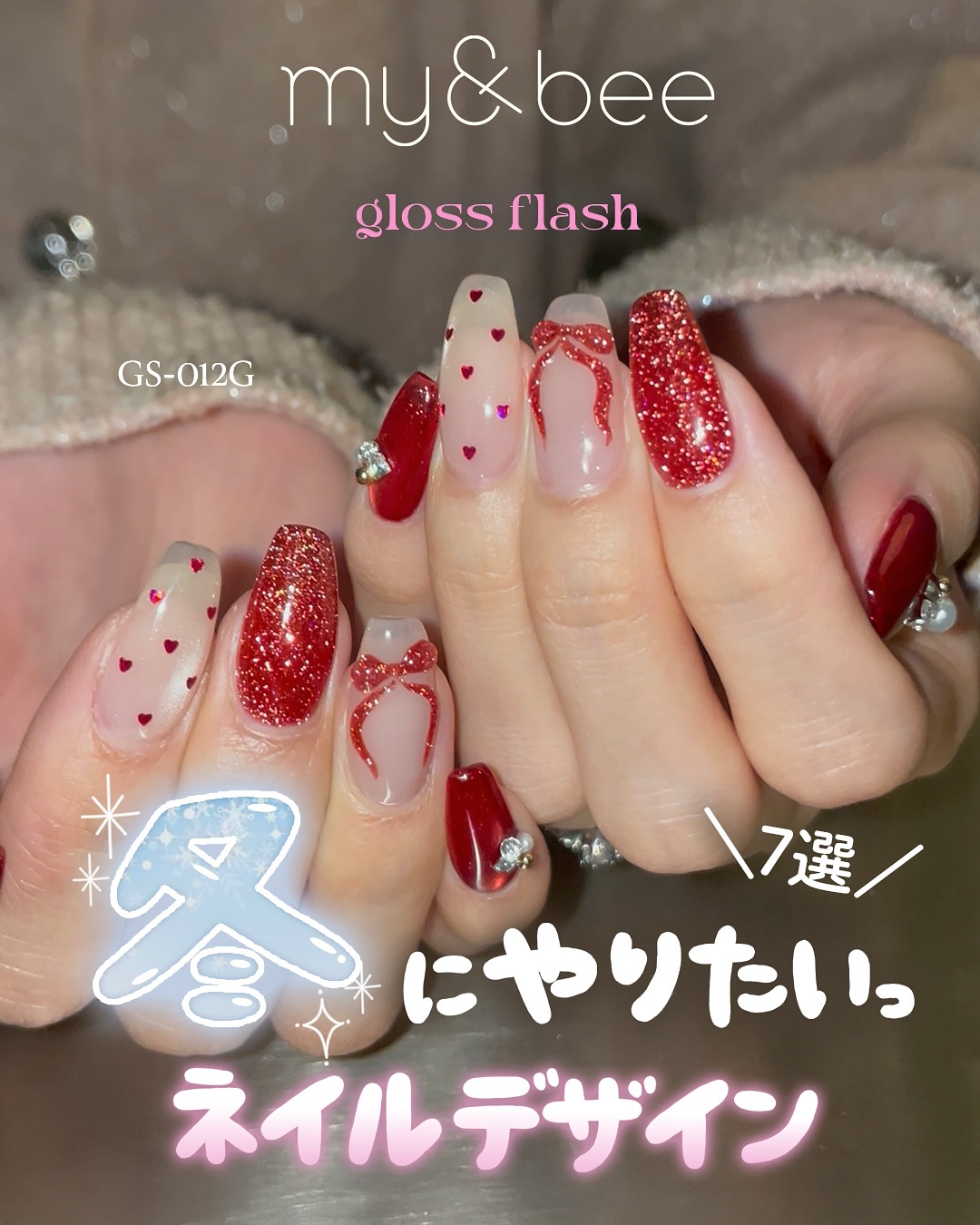 鮮やかな赤ベースにくすみのないフラッシュとオーロラグリッターをMIX