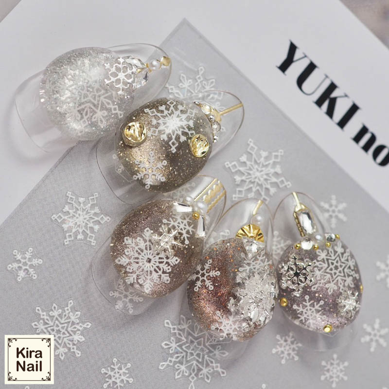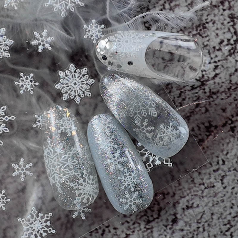 ホワイトオーロラの輝きが美しい、完全オリジナルの雪の結晶シール。