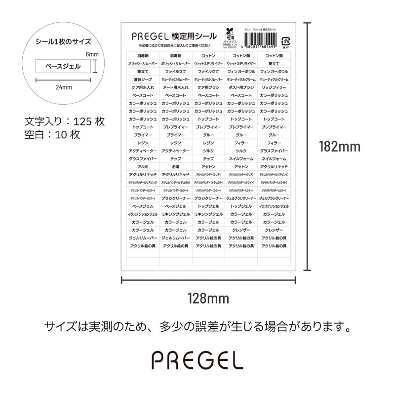 JNECネイリスト検定・JNAジェルネイル検定に使用できる検定用品目シールです。