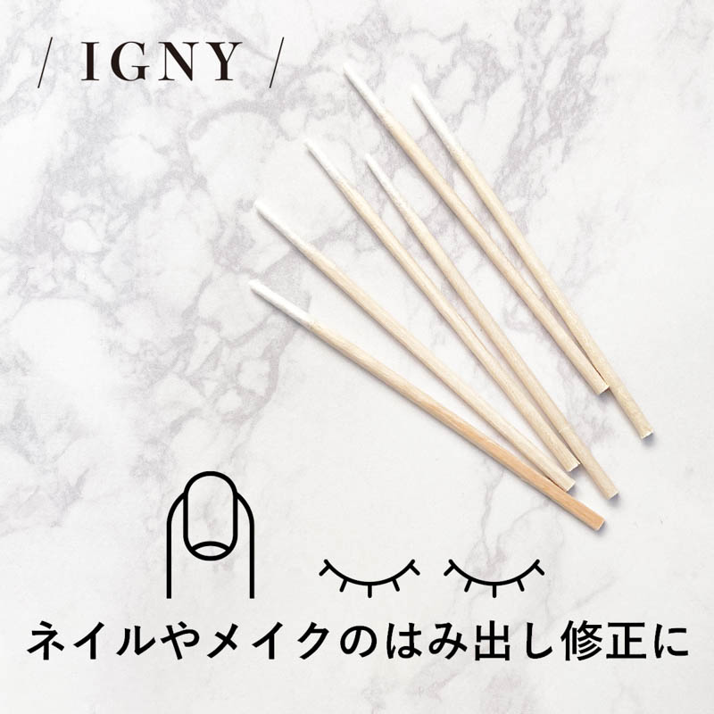 つまようじくらいの細さのコットンスティックです。ネイルのはみ出しや埃が入った際の除去、メイクの修正など細かい所に手が届くアイテムです。