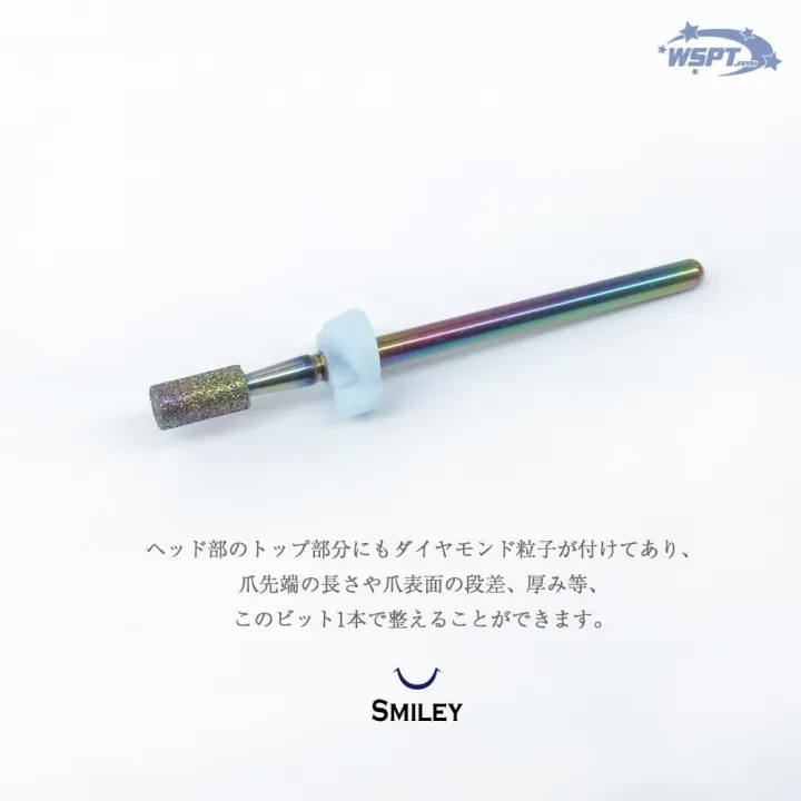 ヘッド部のトップ部分にもダイヤモンド粒子が付けてあり、爪先端の長さや爪表面の段差、厚み等、このビット1本で整えることができます。