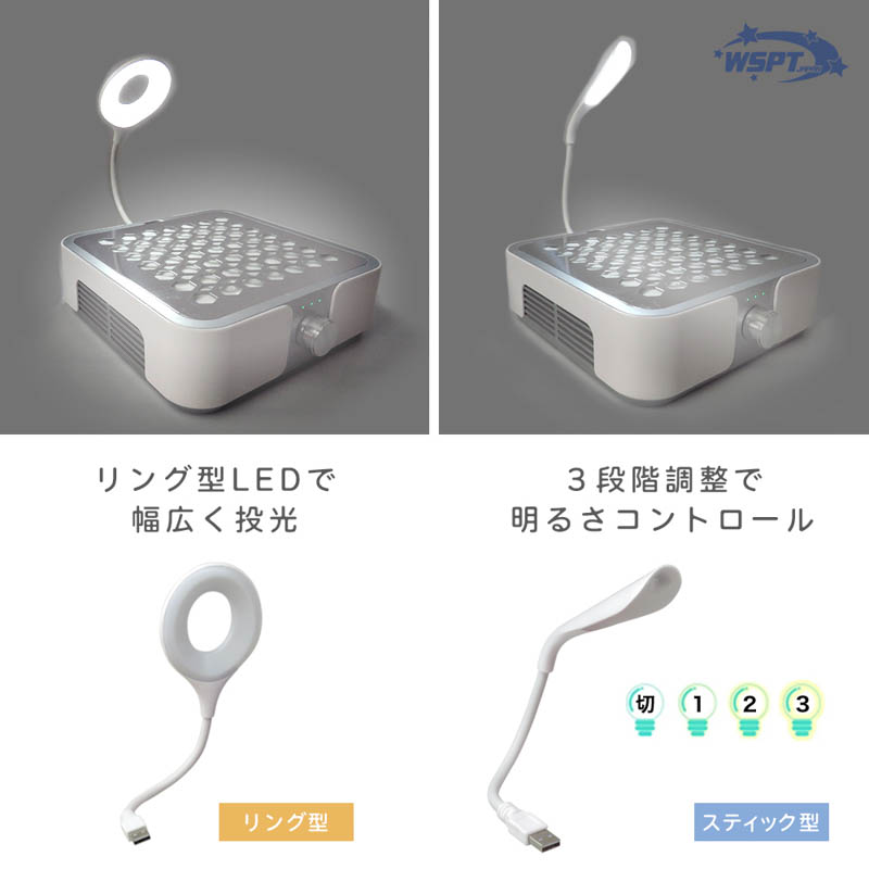 USBに差し込むだけで目に優しいLEDライトが点灯。