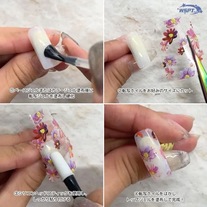 ④、転写ホイルをはがしトップジェルを塗布して完成