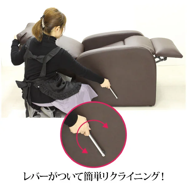 背・脚一体式の手動リクライニング。ふかふかの柔かいクッション性と安定感ある四脚型チェア。