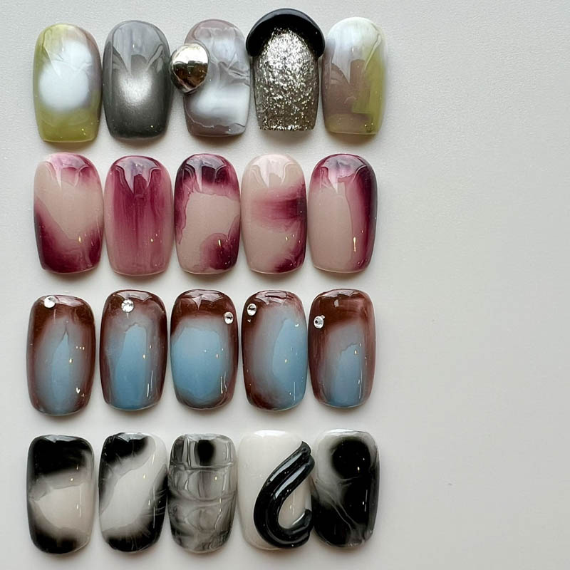 ベースカラーやアートを硬化したらjuwant gelを塗り、硬化せずにカラーを乗せるとじゅわっと広がります。