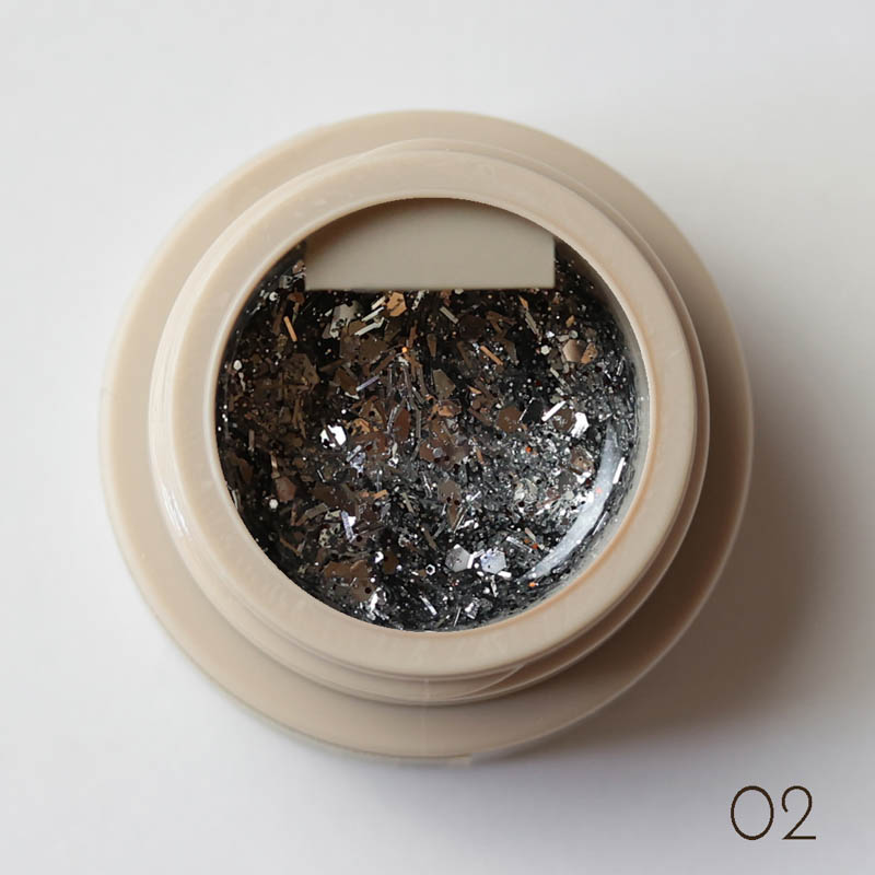 ホロの輝きを際立たせるため、細かいラメは少なめに配合。