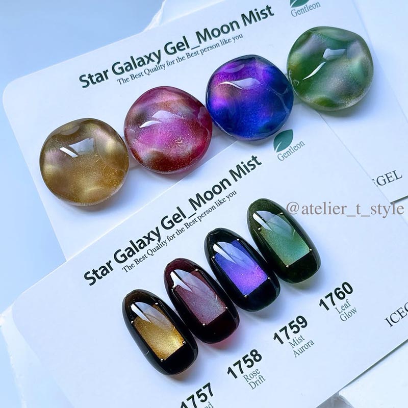 まるで霧に包まれた月の光のように、柔らかく、そして奥深く瞬くマグネットラメ。