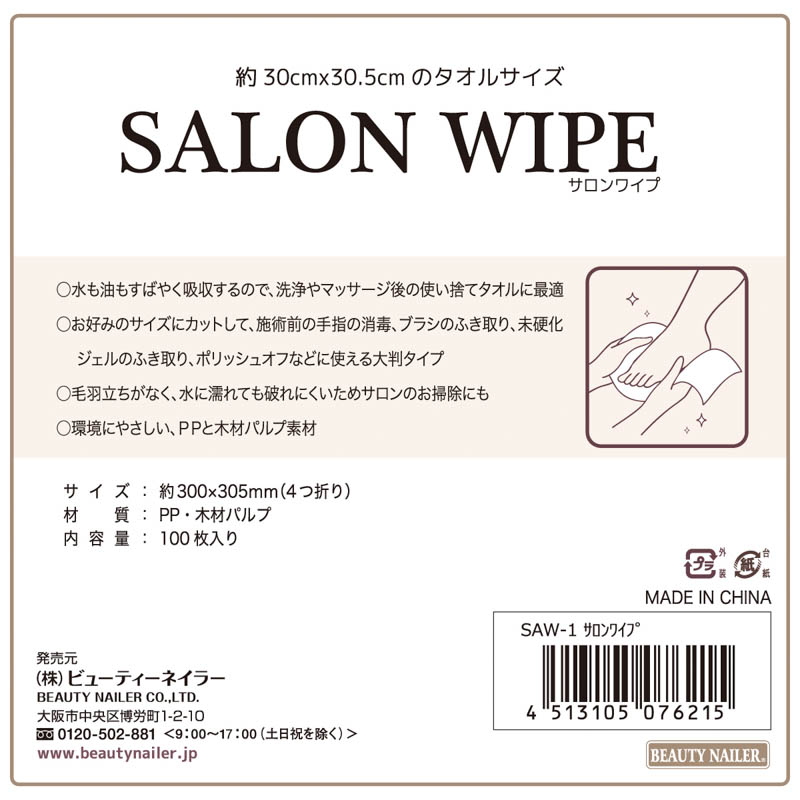 お好みのサイズにカットして、施術前の手指の消毒、ブラシの拭き取り、未硬化ジェルの拭き取り、ポリッシュオフなどに使える大判タイプ