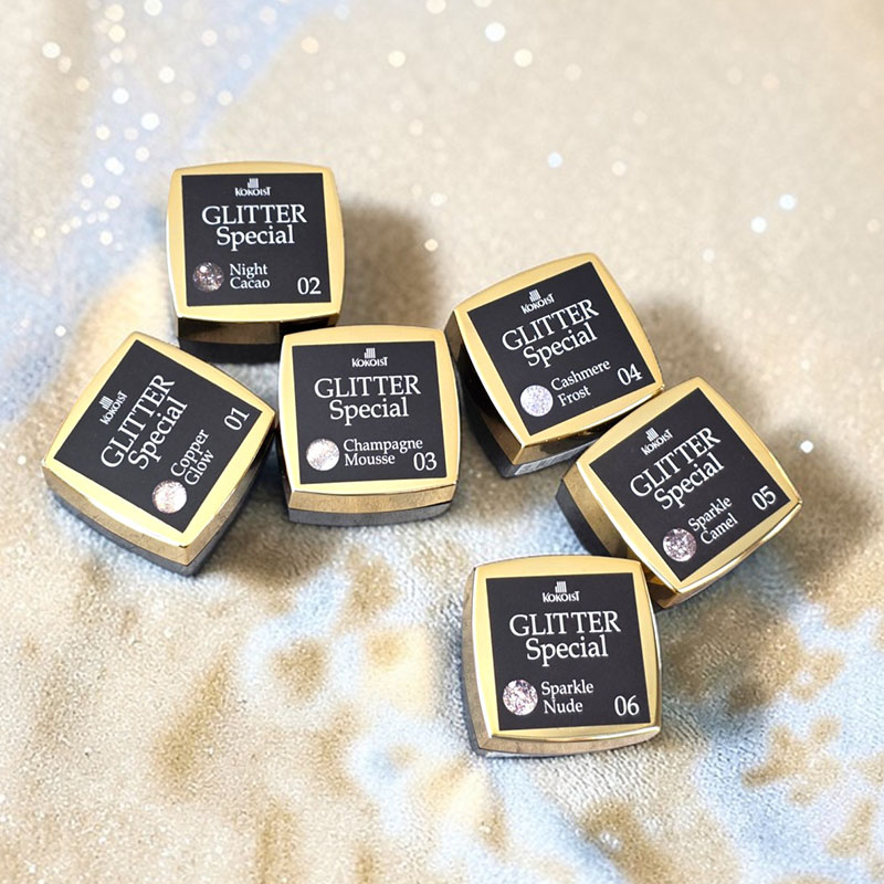 素肌に美しくフィットする大人なシックトーンと、贅沢な大粒グリッター。