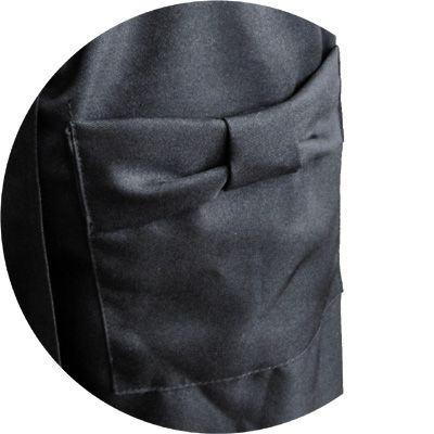 胸元にペンや櫛や筆などがさせるポケットと両脇のリボンポケットは仕事に大変便利!