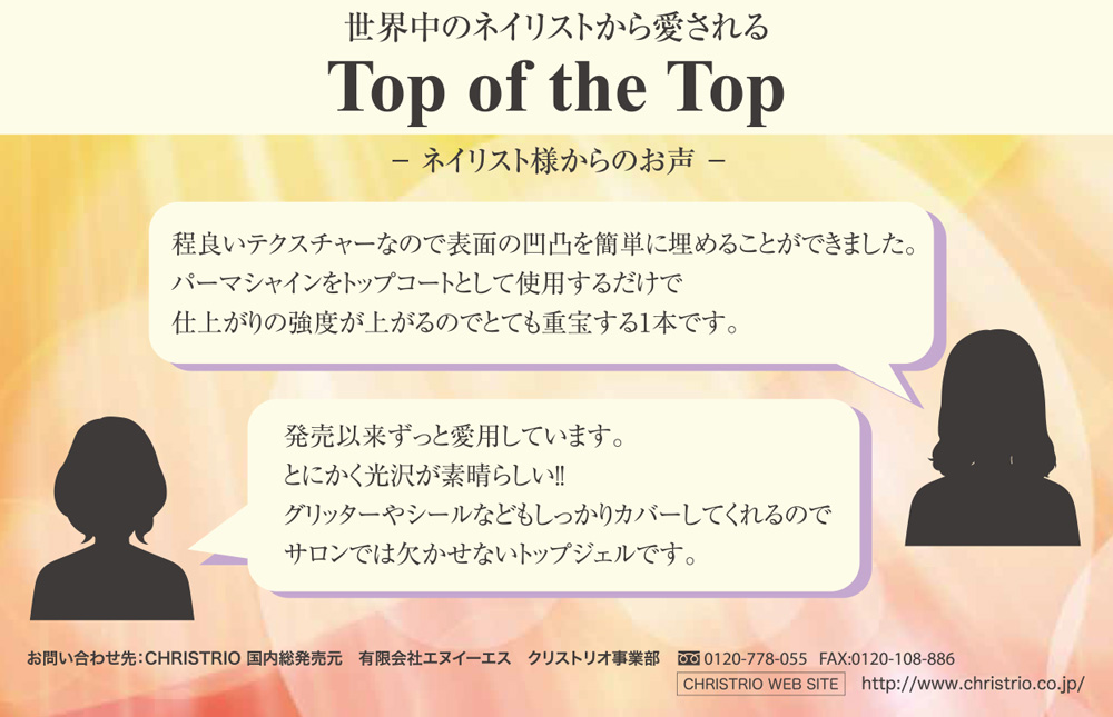 ポリッシュ感覚でご使用いただけるトップコート用ジェルです。すばらしい光沢をもたらします。