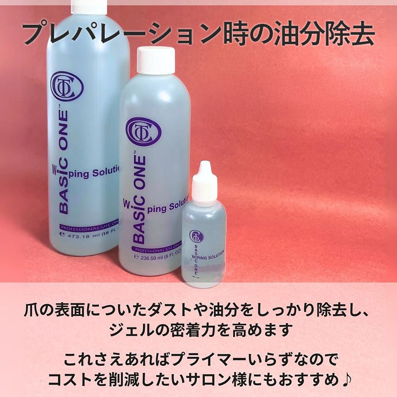 プレバレーション時に使用する事で、ジェルの接合力、持続力を高め、仕上げの拭き取りではすばらしい光沢を引き出します。